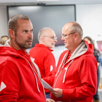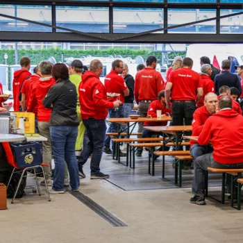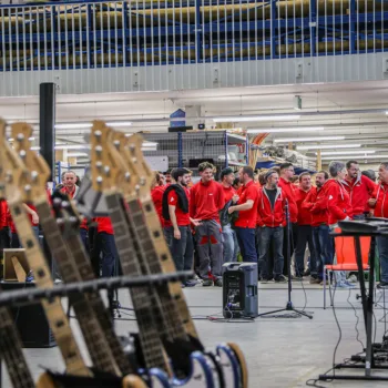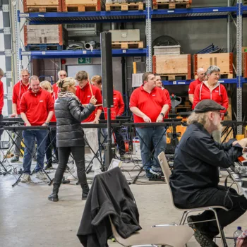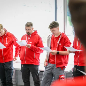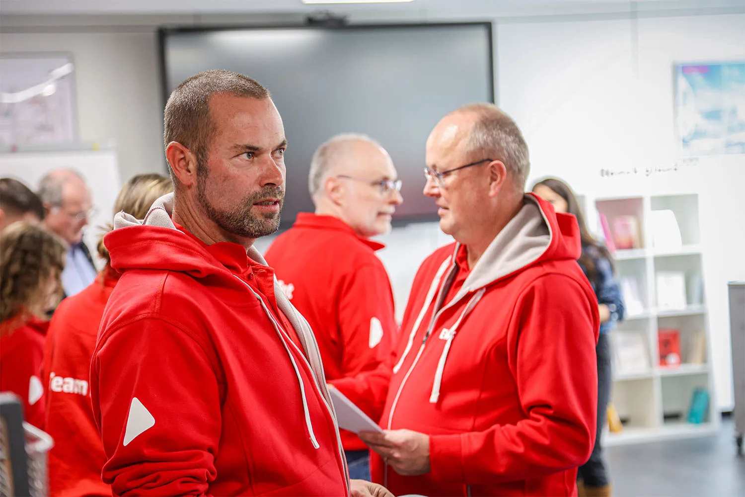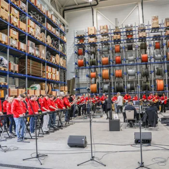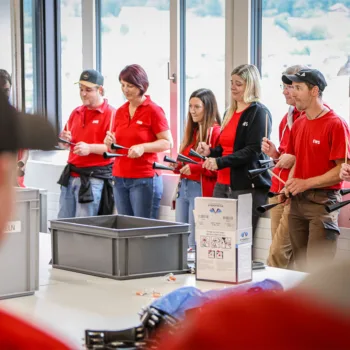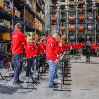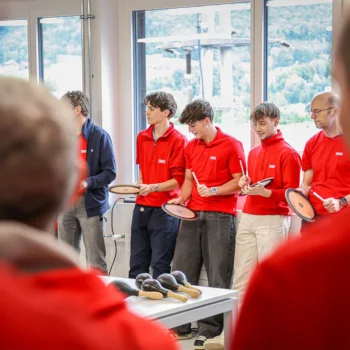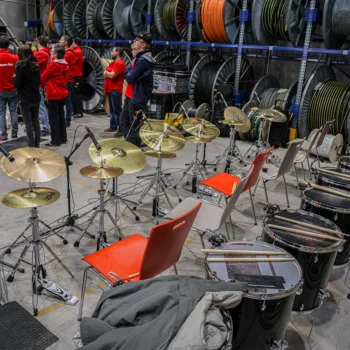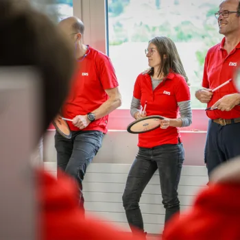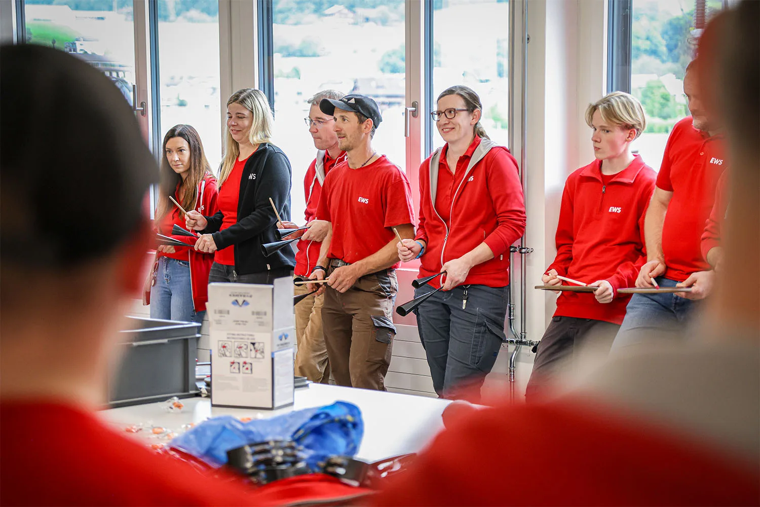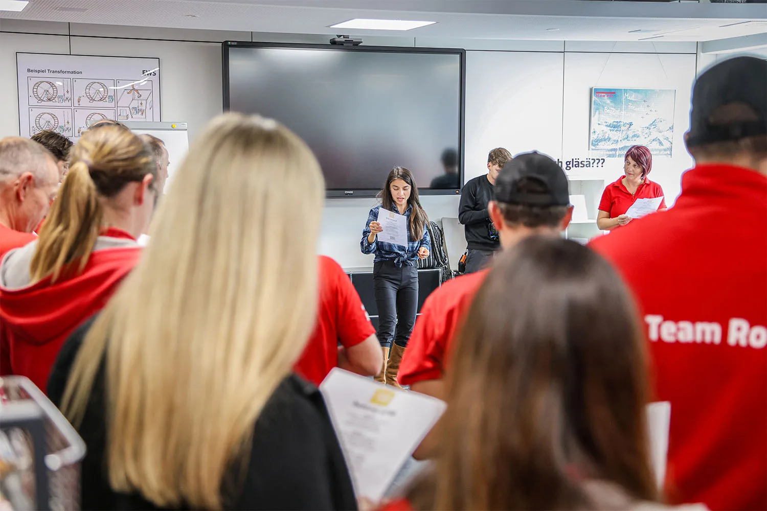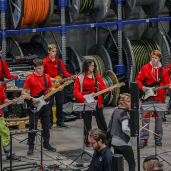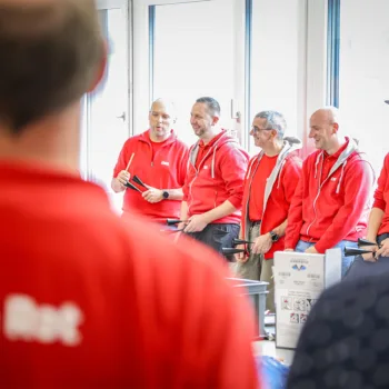 Schon beim Betreten des Raums war klar: Das wird kein gewöhnlicher Nachmittag. E‑Gitarren in Reih und Glied, Bass-Verstärker, Keyboard-Inseln, ein Schlagzeug-Setup, das jedem Open-Air würdig wäre. Und mittendrin rund 130 Team-Rot-Rockstars, die bereit waren, Neues auszuprobieren.