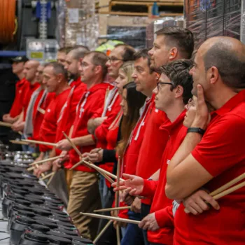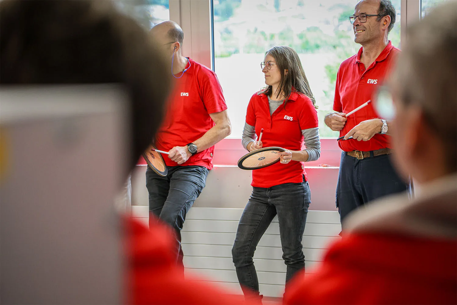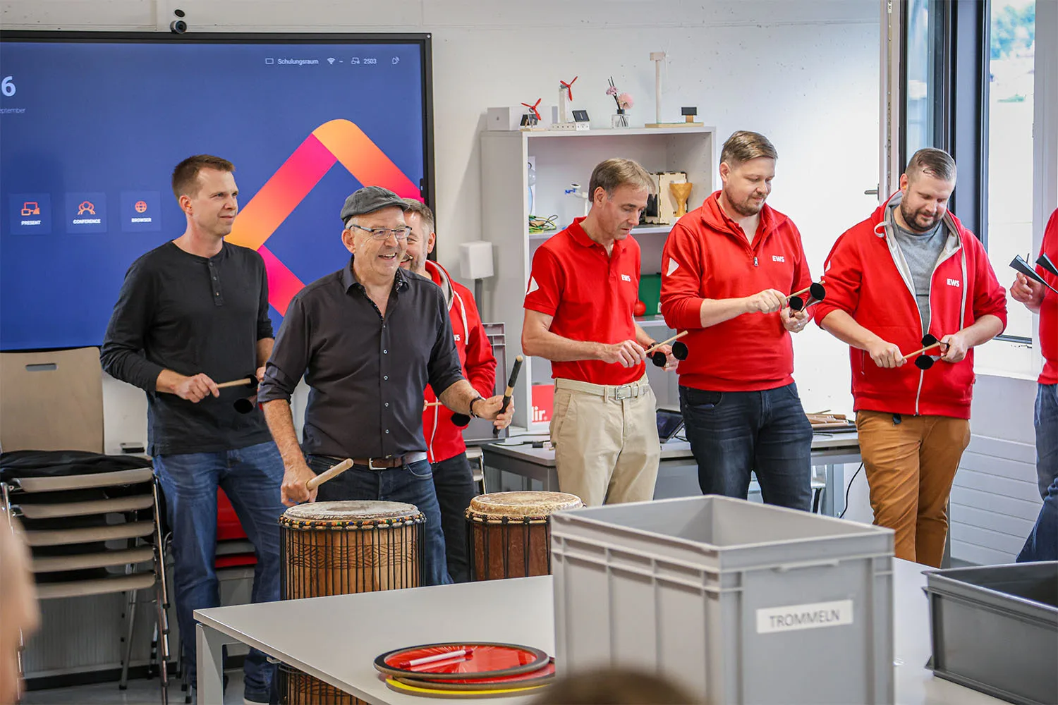 Und genau darum gehts: Die Profimusiker von Rock Your Team schaffen es, in kurzer Zeit eine lockere Atmosphäre zu erzeugen, Hemmungen abzubauen und uns gemeinsam im Takt mitreissen zu lassen.