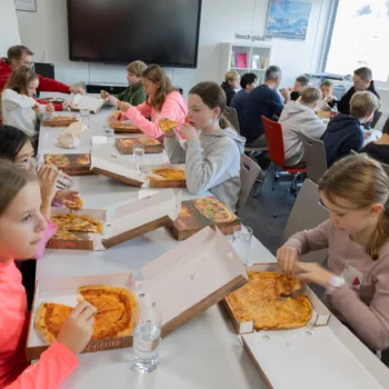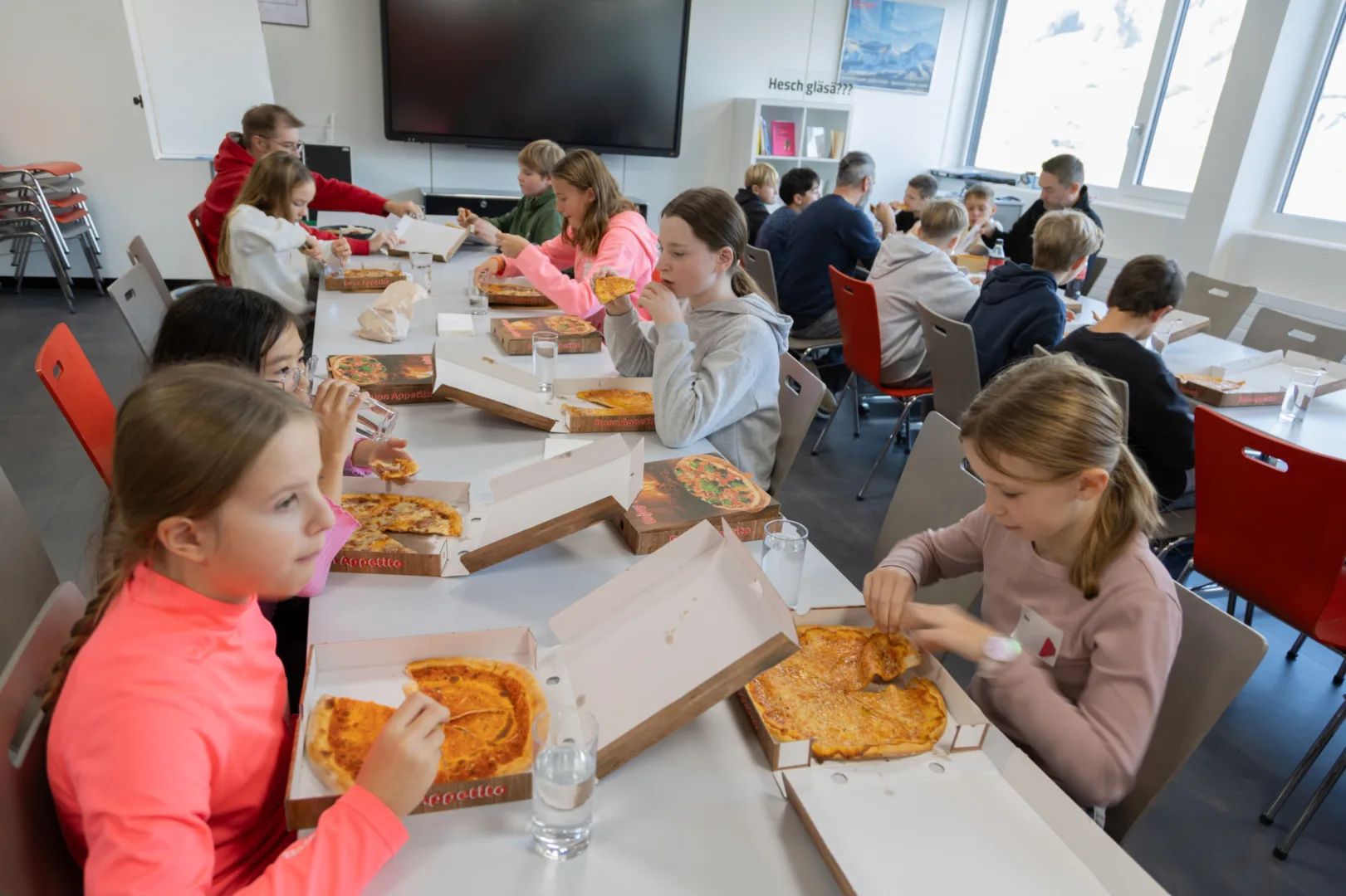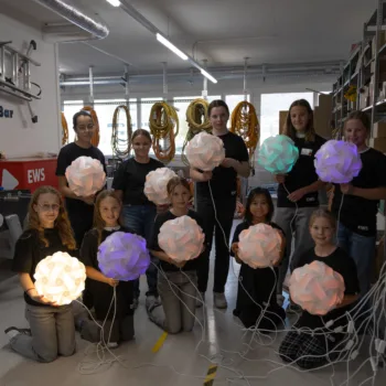 Beim Pizzaplausch am Mittag trafen beide Gruppen aufeinander und es gab einen regen Austausch über das Erlebte. Auf dem gemeinsamen Rundgang durch die Netzleitstelle, Netzhalle, Trafostation und Werkstätte erlebten die Teilnehmenden die Vielseitigkeit der Elektrobranche hautnah. Sie erhielten spannende Einblicke in verschiedene Berufsfelder. Beim anschliessenden Zusammenbauen der LED-Leuchten mit Farbwechsel lernten die Teilnehmerinnen Geduld und Geschick. Ein Kahoot-Quiz mit Wissens- und Scherzfragen rundete den Tag ab. Beim Abschlusstreffen erfuhren die Eltern, was den Tag besonders gemacht hatte. Mit durchgehend positivem Echo.